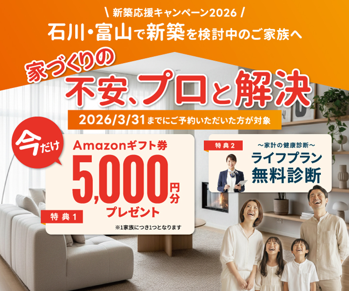 石川県・富山県で新築をご検討中のご家族(すでに住宅会社を決めた方は対象外となります)